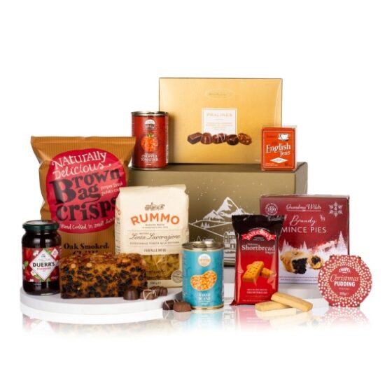 Celebrate the season with our Festive Family Fayre Hamper – a joyful, alcohol-free collection bursting with comforting classics and Christmas treats the whole family will love. Presented in a beautifully printed Christmas-themed carton, this generous gift is brimming with flavour and festive charm. An ideal gift to surprise a loved one with thoughtful indulgence. This hamper contains 11 items: Brown Bag Crisps Oak Smoked Chilli Crisps 150g Casa de Campo Baked Beans 400g Casa de Campo Italian Chopped Tomatoes 400g Chapel Bakery Christmas Pudding 227g Duerrs Strawberry Jam 454g Grandma Wild’s 4 Luxury Brandy Mince Pies Hamlet Excelcium Chocolate Assortment 180g Maxwell & Franks Dundee Slab 350g New English Teas English Afternoon Tea – 10 Teabags 20g Paterson’s Shortbread Fingers 150g Rummo Farfalle No 85 500g Packed in decorative postal carton